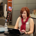 Intern Krisztina works on folders