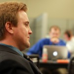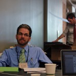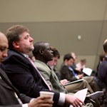 Stephen Grabill listens to Charles Self speak