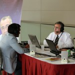 AU participants check their laptops during the break